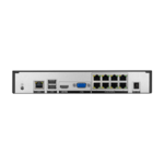 Главная фишка этой модели 8 PoE портов. Это значит, что каждый подключённый IP канал не только передаёт видео, но и получает питание по тому же самому кабелю. Не нужно прокладывать отдельные линии для блоков питания минимальный кабельный хаос, проще установка и мгновенный запуск камер.